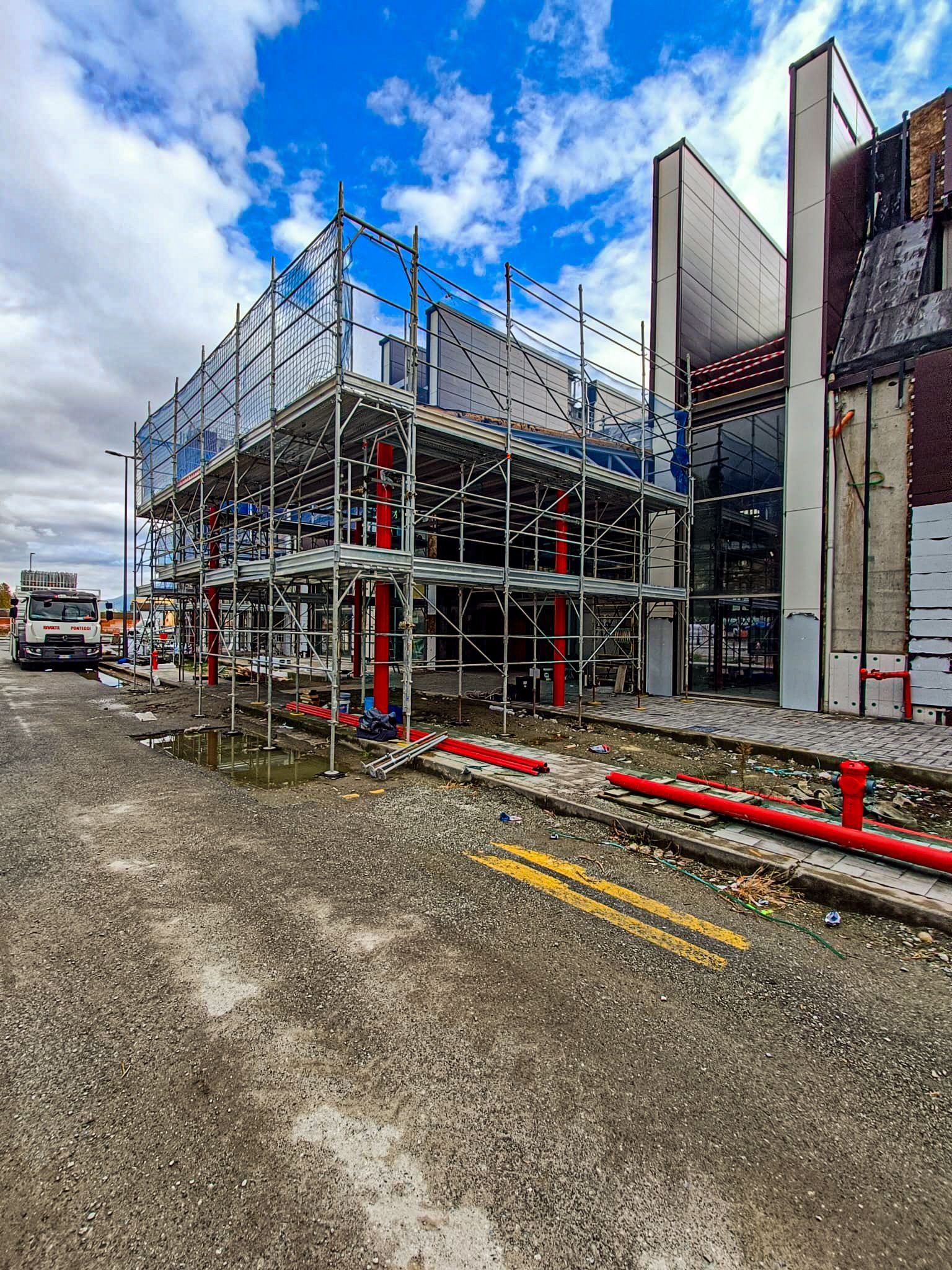 - Progettazione su misura: Il ponteggio è stato disegnato per integrarsi alle esigenze del cantiere, garantendo sicurezza ed efficienza.